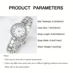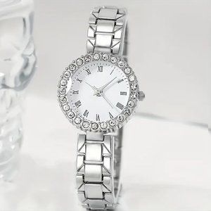 1pc Rhinestone Decor Quartz Watch Flower Pointer Analog Dress Watch & 5pcs Jewel