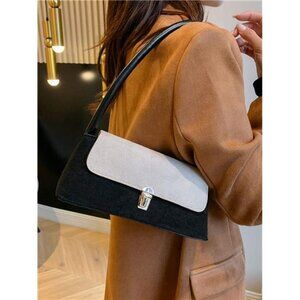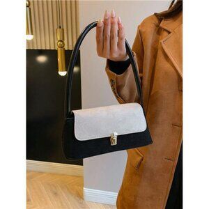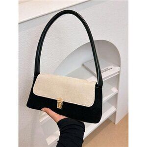 1pc Solid-Colored Suedette Lock Buckle Purse