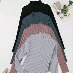 1pc Women Plain Stand Collar Long Sleeve Casual Top