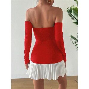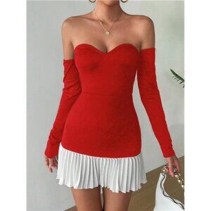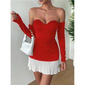 1pc Women's Random Pleat Color Block Strapless Dress, Fashionable