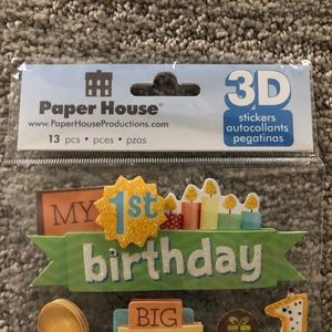 1st Birthday Stickers - NEVER OPENED - 3D - Baby Item - Paper House