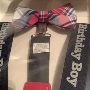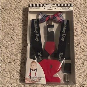 Interchangeable 1st and 2nd birthday set with suspenders and bow tie