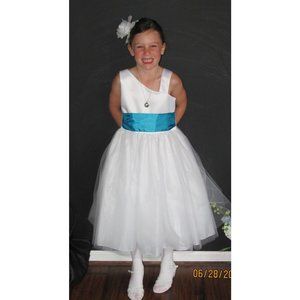1st Communion/Flower Girl Dress-White W/Sash-Sz 7-Worn Once