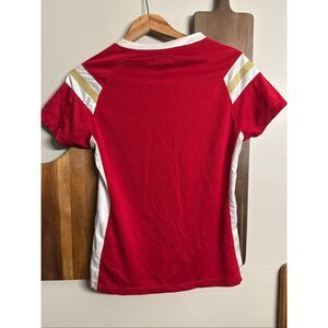 1st & Fashion San Francisco 49ers NFL Red Sparkly Lace-Up Jersey T-Shirt Small
