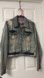 Stylish jean jacket with lace details. Button-up front. Distressed design. Perfect for casual wear.