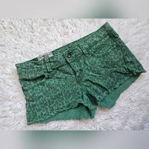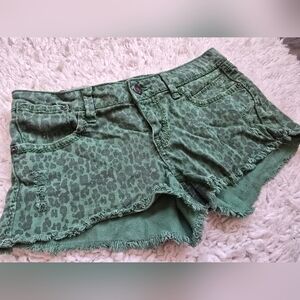 Stylish green leopard print shorts perfect for casual outings. Enjoy comfort and fashion with these trendy shorts.