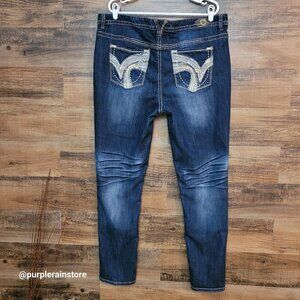 1st Kiss Jeans 20 Skinny High Rise Embellished Thick Stitch Dark Wash Stretch