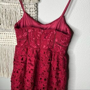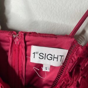 1st Sight Red Lace floral Midi Dress size small. excellent preowned condition. Pit to pit 14” Length 36.5”