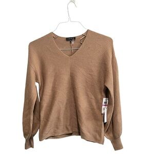 1.state Rib-Knit Puff-Sleeve Sweater - Wild Oak, New with Tags