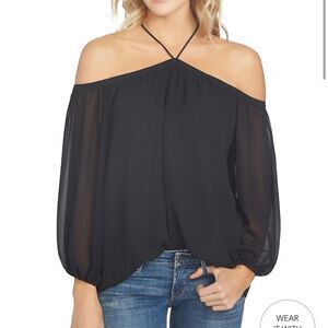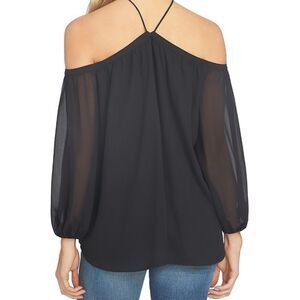• High V-neck, long sleeves with elasticized cuffs • Cold-shoulder cutouts, back button closure • 100% polyester • Machine wash Worn once