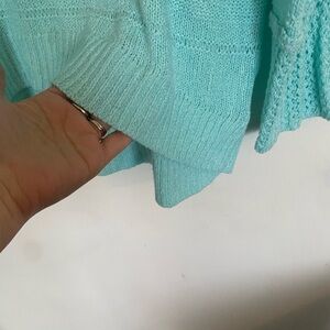 From Olivia sky ladies one X teal loose knit pull over sweater, high low. This is so perfect for spring/summer cruises beach trips, resorts. Thanks for looking Happy shopping.