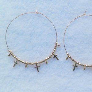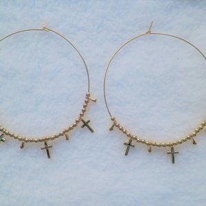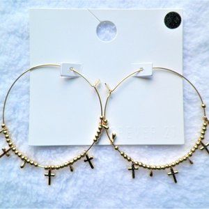 ~Forever 21 Gold Cross 2 1/4" Hoop Pierced Earrings