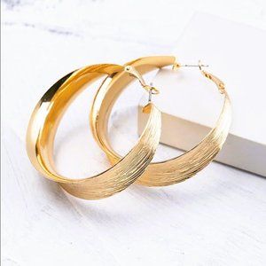 Brand NEW Women's Chunky Brushed Gold Hoop Earrings