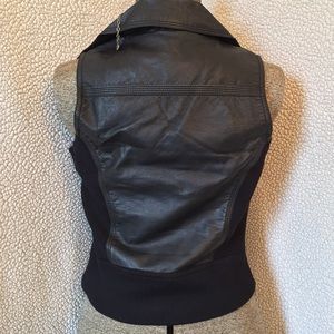 Made from fake leather body, cotton lining, side and back bottom rib are 74% Rayon, 25% Polyester and 1% Spandex. Asymmetrical zipper closure at front, zipper pockets at hips. Only used once, necklace not included. If you have any questions please feel free to ask and also if need be, ask for more pictures... 😄