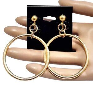 2 3/8 Inch 60mm Hoop Clip On Earrings Gold Tone