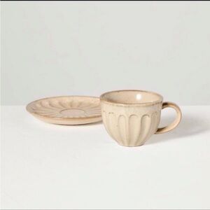 Set of 2 | 4.5oz Fluted Stoneware Espresso Cup & Saucer Tan - Hearth & Hand™ with Magnolia