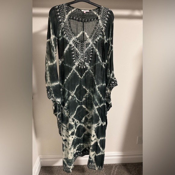Calypso St Barth Vintage Maxi Tie-Dye & embroidered Boho Dress, slightly sheer, excellent condition