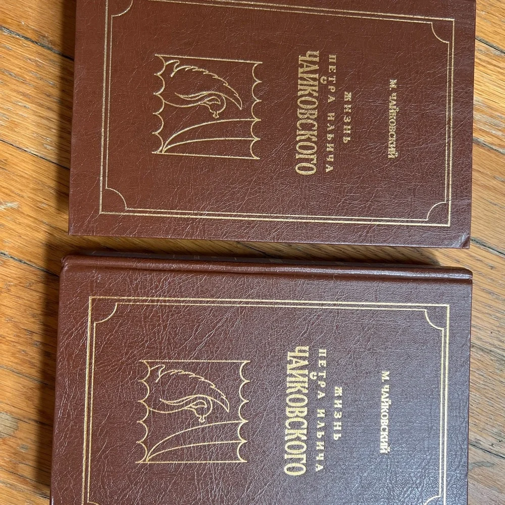 Set of brown hardcover books with gold detailing. Elegant design with embossed cover.
