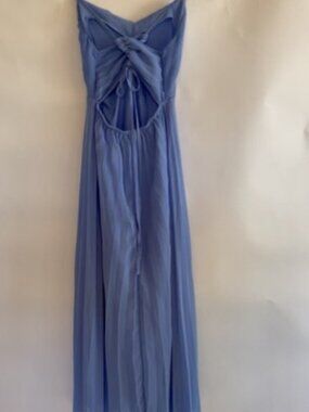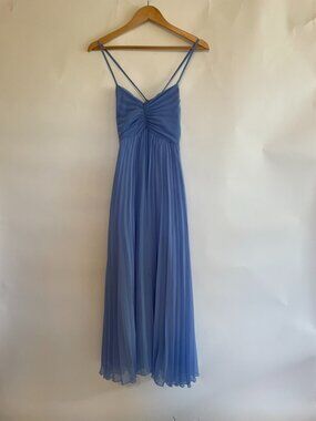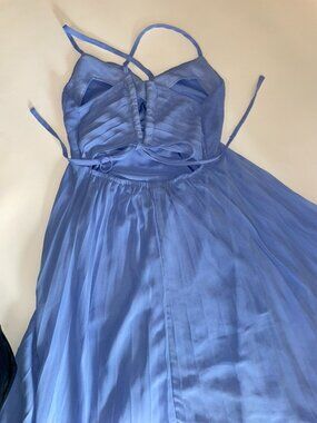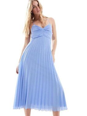 Baby blue ASOS pleated dress 💙 worn once and still in great condition! There’s a small stain on the back and slight fading pleats on the back (as seen in picture), but it’s not very noticeable in normal lighting—I used flash in the photo so you can see it clearly.