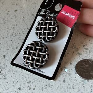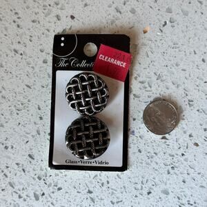 Set of 2 1980s Vintage Blumenthal Lansing Glass Gunmetal Silver Round Flat Lattice Shank Buttons On Card 1"