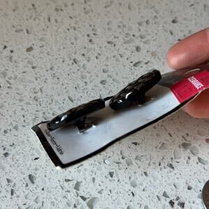 2 80s Vintage Blumenthal Glass Gunmetal Silver Czech Shank Buttons On Card 1"