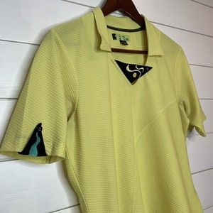 2 A Tee Women's Golf Polo Shirt Medium Textured Lightweight Yellow Green Unique