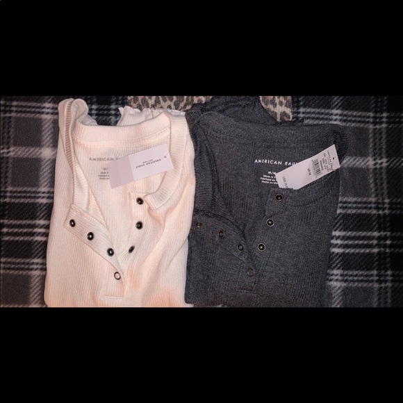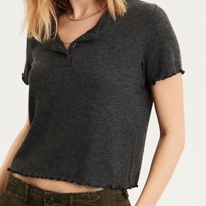 2 AEO Ribbed Lettuce Edge Tees