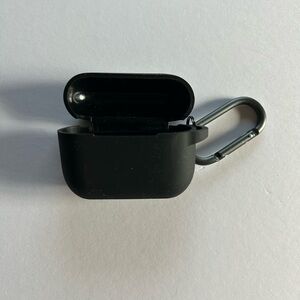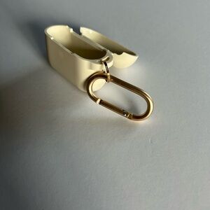 AirPods cases in black and cream. Each comes with a carabiner for easy attachment.