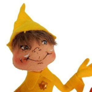 Just in time for Fall and/or Thanksgiving! Adorable 10-inch Annalee orange and yellow standing elves/pixies. Each doll has a closed mouth smile, pug nose, orange/yellow suit that's adorned with metallic fall leaf buttons, cone-shaped hat, and body. Perfect for your autumn and Thanksgiving display.