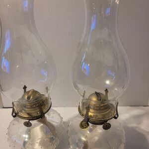 2 ANTIQUE VINTAGE LAMPLIGHT FARM OIL LAMP COLLECTIBLES HOBNAIL GLASS Clear