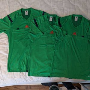 Available are 2 Adidas 2014 green soccer referee uniforms in size Medium. These are in great shape and show little to no signs of wear.
