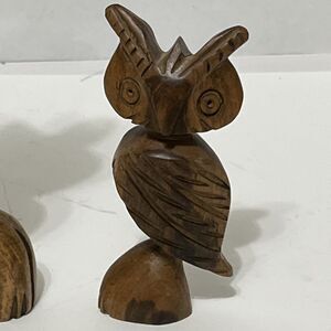 2 Adorable Hand Carved MCM Wood Owl Statue Figurines Unique Weirdo 8” & 5”