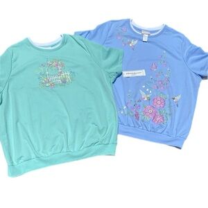 2 Alfred Dunner Embroidered Short Sleeve Knit Tops 3X Cottagecore