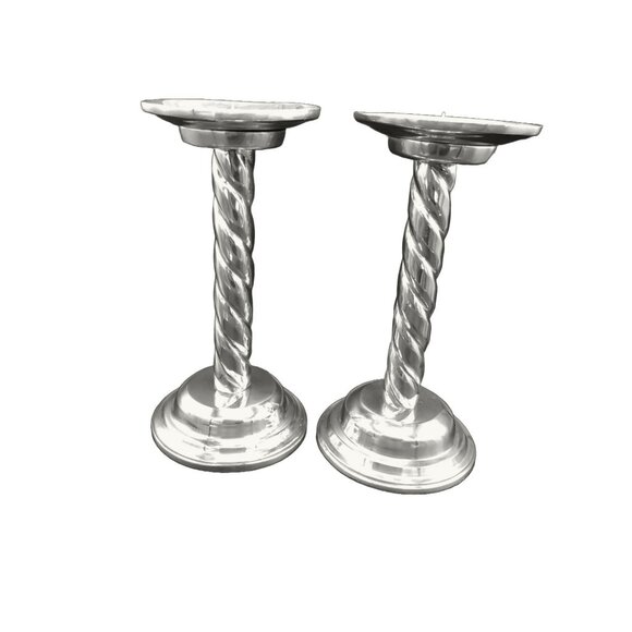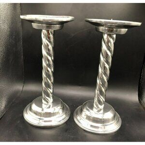 Pair of Aluminum/Pewter(?) Silver Candle Holders Sticks with Twist/Swirl Design 10"