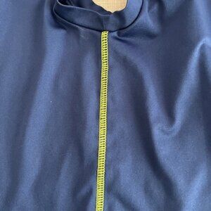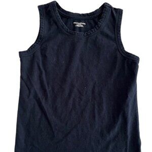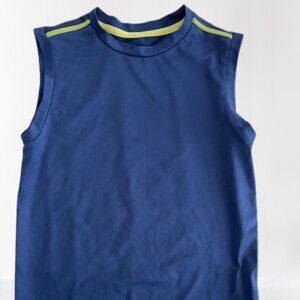 Two sleeveless tank tops for kids. Perfect for the summer and hot weather ahead. Royal blue shirt with chartreuse over stitching is made of 90% Polyester and 10% Elastane. Navy blue shirt is made of 100% Cotton. Both are machine washable/dryable.