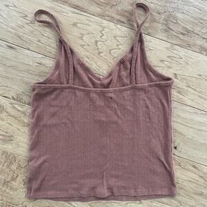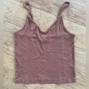 Rust colored Pointelle tank top with v-neck. About 14.5 inches across armpit to pit and 19 inches long