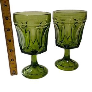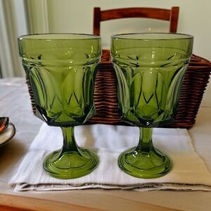 2 Anchor Hocking Fairfield Wine Glasses Water Goblet Stemmed Avocado Green MCM