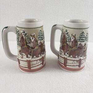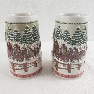 2 Anheuser-Busch Budweiser Beer Steins 3D Clydesdale Bridge Limited Edition