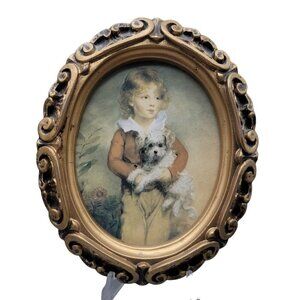 2 Antique Prints Master Simpson & Thomas Lawrence Miss Murray Boy w/Dog 6" Frame