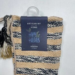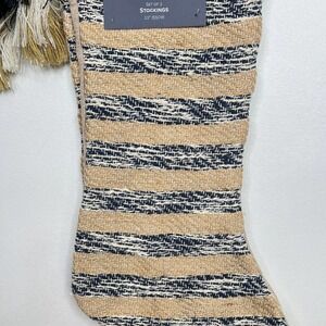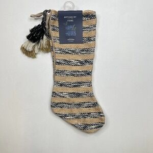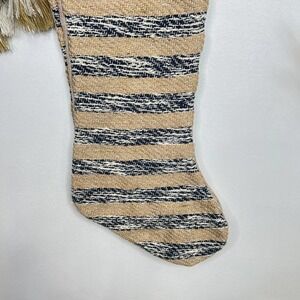 2 Artisan NY Home Burlap Jute Blue Silver Christmas Stockings Tassels Stripe 22"