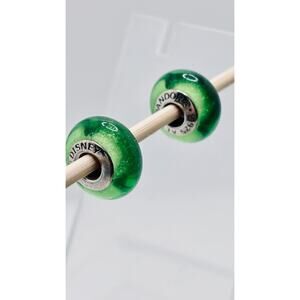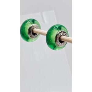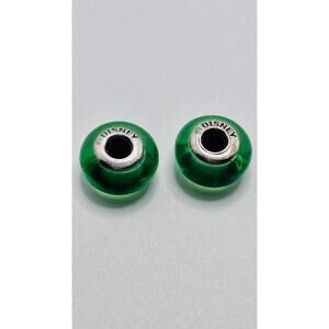 2 Authentic Pandora ALE Sterling Silver Green Disney Murano Glass Beads Charms