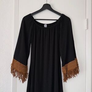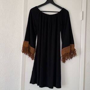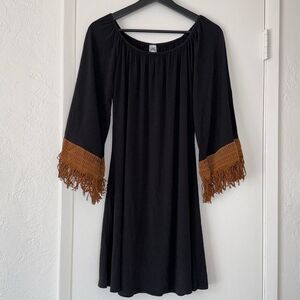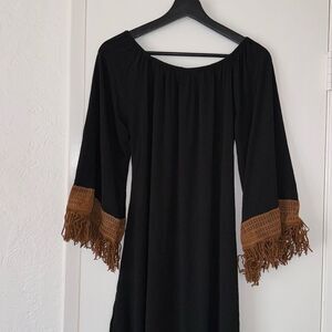 NWOT Honeyme Womens Size Small Tunic Fringe Dress Black N 0115