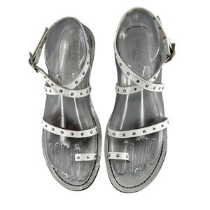 ❤️2 BOGO JIMMY CHOO White Brown Studded Leather Ankle Wrap Toe Ring Sandals 39.5