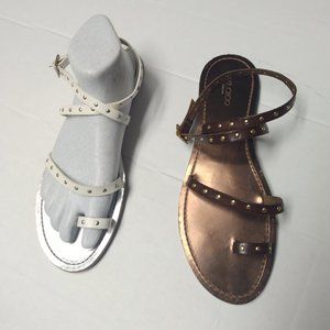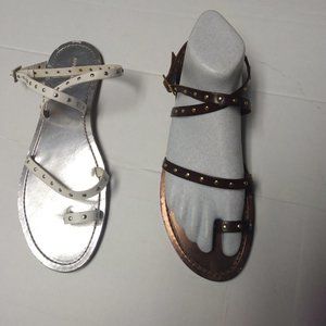 ❤️2 BOGO JIMMY CHOO White Brown Studded Leather Ankle Wrap Toe Ring Sandals