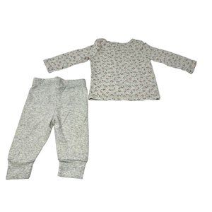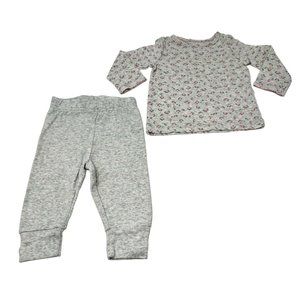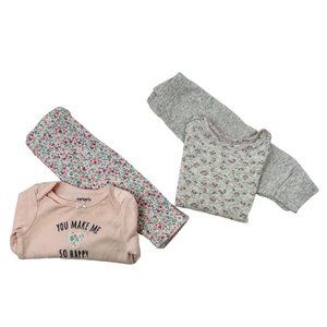 This 2-pack of baby girl's outfits includes a floral print leggings with a matching long sleeve pink bodysuit and grey leggings with a coordinating long sleeve grey and pink shirt. Perfect for babies size 6 months.