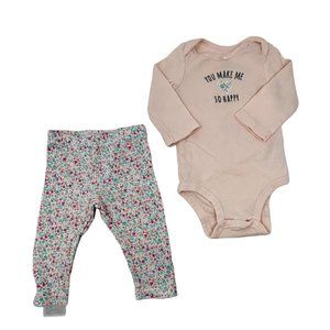 2 Baby Girl's Outfits - 2 Leggings, 1 Body Suit, & 1 Shirt - Size 6 Month