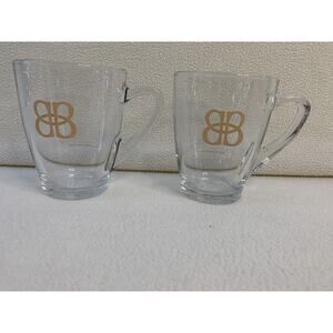 2 Baileys Irish Cream Whiskey Clear Glass Coffee Mugs Gold Accent Logo