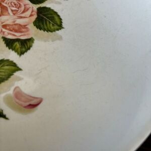 2 Ballerina By Universal Rose Pattern 8” Bowls. White with rose/rose bud pattern. Bowls have some minor scratches and wear. See photos.