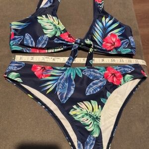 Pair of bandeau bikini tops. Straps included to convert to halter bikini tops. Xhiliration brand. Size: Medium. Can fit 28-32 inches. Hardly worn. Very cute back straps.