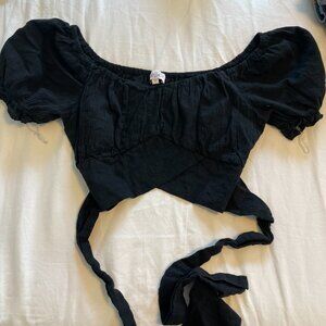 Black Size M scoop neck, puffed sleeve, crop-top with a tieback! In great condition!